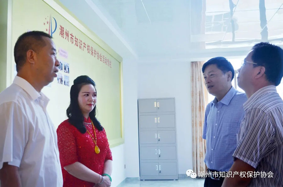 潮州市知识产权保护协会会长陈春权表示热烈欢迎,梁文哲秘书长等陪同考察调研。