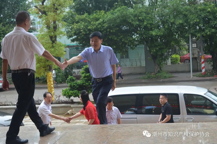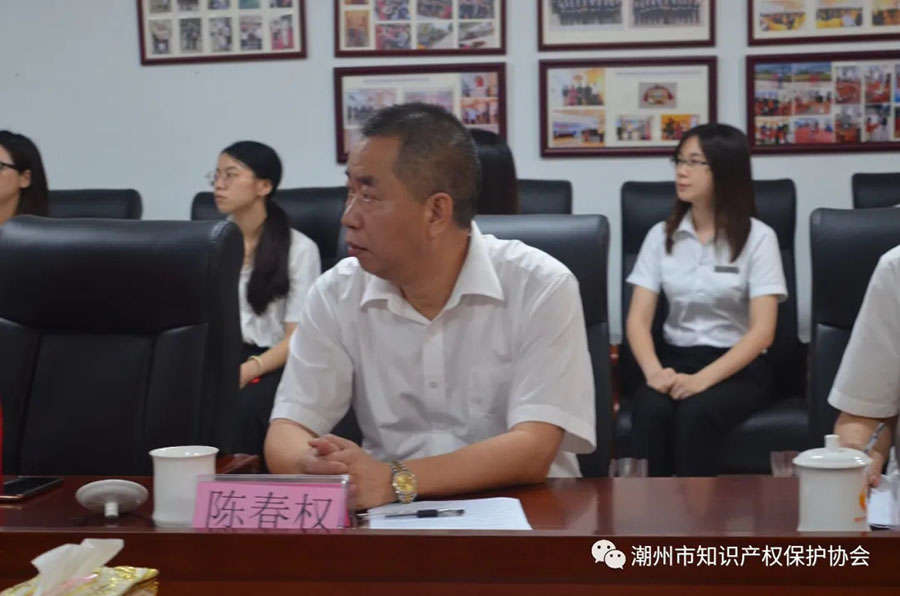 潮州市知识产权保护协会会长陈春权表示热烈欢迎,梁文哲秘书长等陪同考察调研。